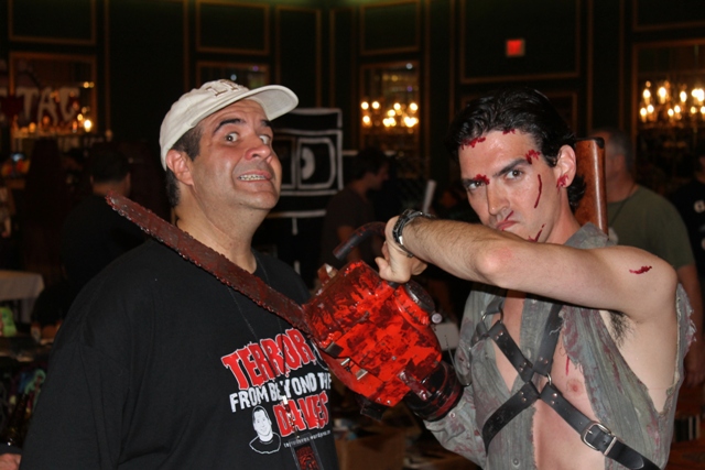 We arrived at the hotel just after the event started and quickly checked in. While putting down our bags, I handed Russ an extra Terror from Beyond Daves T-shirt which I’d meant as a joke but Russ honored me by actually wearing. This would give the impression that he was the other Dave and allow for more effective networking. Concerning event coverage, its always better when you’re a duo as opposed to a single. The ploy worked since several folks referred to him as “Dave” and a couple praised “our” site.