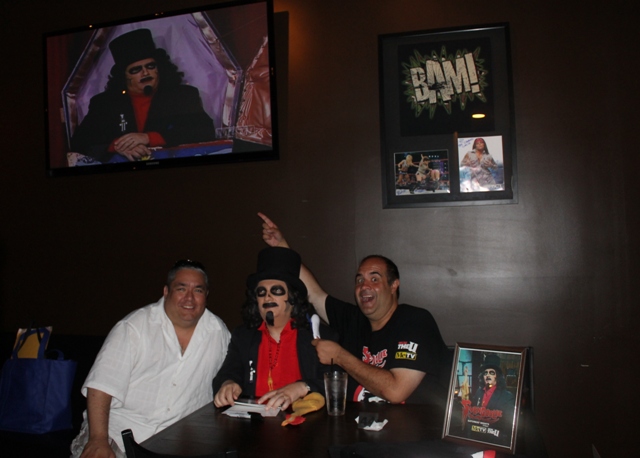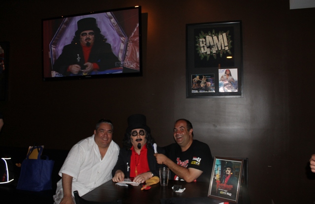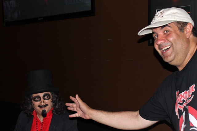 It was then I heard a loud, “Dave Fuentes!!!” from behind me. I turned around and saw Brian Bernardoni sitting at a table with his father. I’d met them not long ago while we were both visiting Acme Design  (creators of Svengoolie’s new coffin) and wasted no time introducing him to Don & Bunny.