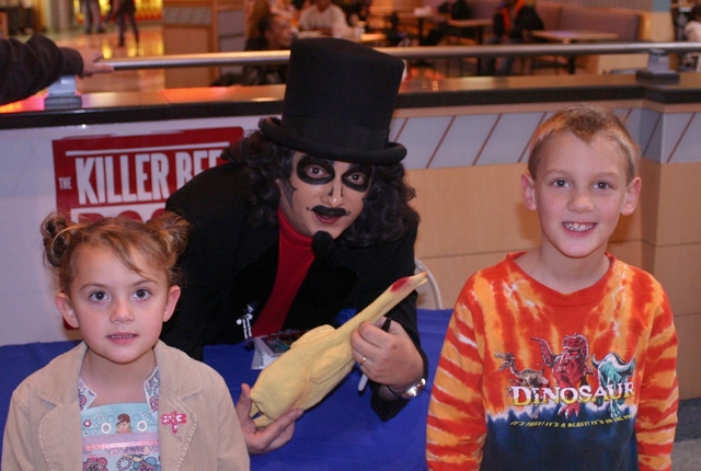 #3) The early bird catches the rubber chicken! No matter where Svengoolie is signing, it’s always a good rule of thumb to get there early. This was a lesson I’d learn the hard way. In 2008 I drove down to Bourbonnais, Illinois (the farthest south I’d ever seen him) at a County Fair. It was pouring rain and I stood huddled with the kids, our feet covered in mud, for 90 minutes. The next year I found myself at the wrong end of a two hour line at The Party City store in Orland Park.