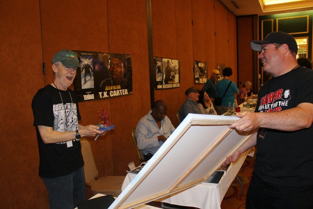 To express his love of the film, Russ created a painting that he’d shown me the previous March while we were at the Horrorhound Weekend in Cincinnati. He’d brought it along with the hope that he could get it signed by the film’s director, John Carpenter. Later, he’d change his mind after seeing how long the line was to meet him. Personally, I felt this event was more appropriate for its debut anyway.