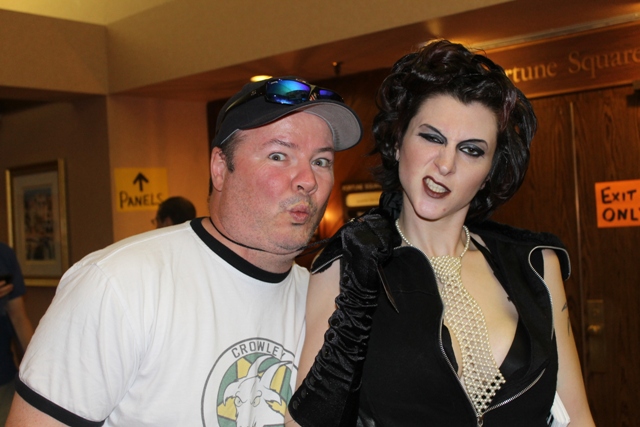 He looked up and studied me for a few seconds before saying, “Fantastic!” with the same inflection one would use if saying, “F*ck off!” I don’t know what it is about me that rubs Busey the wrong way but, unlike the last time I’d met him (covered HERE), there was no Penny Dreadful around to protect me. Fortunately he resumed chatting with SAW guy while I stared at the blinking floor numbers as if that might help the damn elevator move faster!