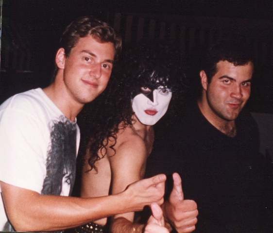 In preparation for that show, I grew a short goatee (to mimic Simmons’ Revenge look) and shaved half of it off. Jason then painted my clean shaven side with Gene’s familiar bat wing. The goal was to become a sort of composite Gene Simmons (sporting both looks at once) which must have made an impression as Simmons, while performing at the concert, looked at me and pointed. He stuck his famous tongue out at me before twirling his finger around his ear and mouthing “You’re crazy!”…which in the KISS universe, is actually a compliment.