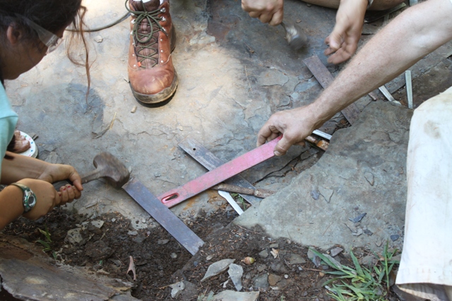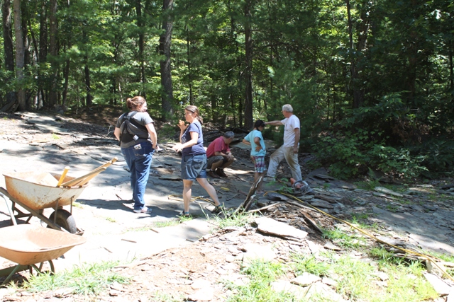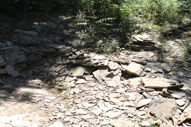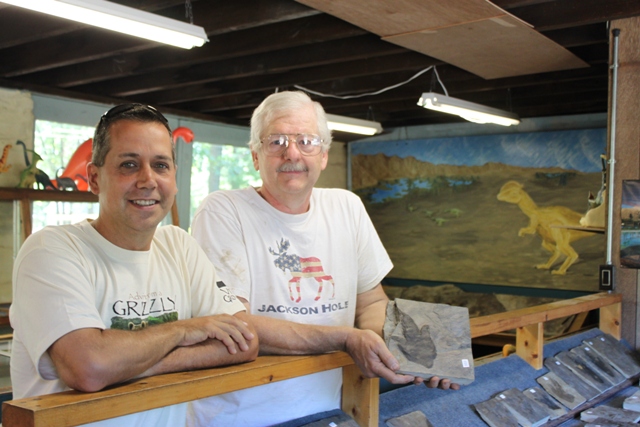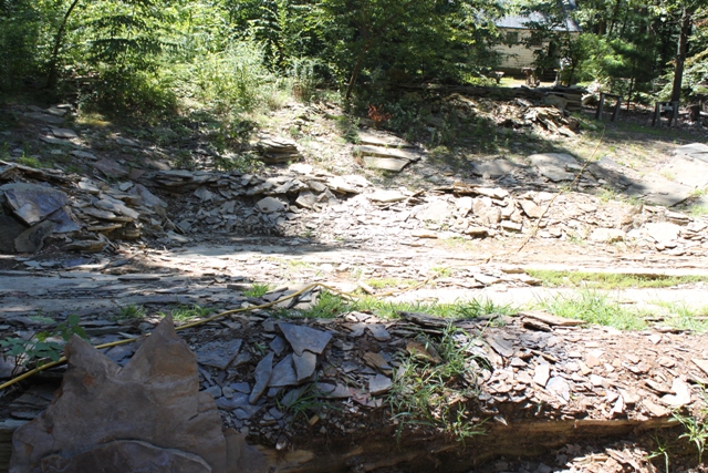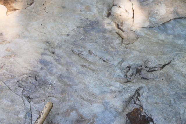 It was just a short walk to the quarry and it was very interesting to see Kornell, with the aid of the visiting family, removing layer of rock revealing new dinosaur footprints. When done correctly, I learned, you can end up with two sets of tracks, a positive and a negative. According to Kornell, at the spot we were standing, a good six feet of material had been removed since Nash’s opened in 1939. That is a lot of material considering many layers are only an inch or so thick and everything has to be meticulously removed to avoid damage to the prints.