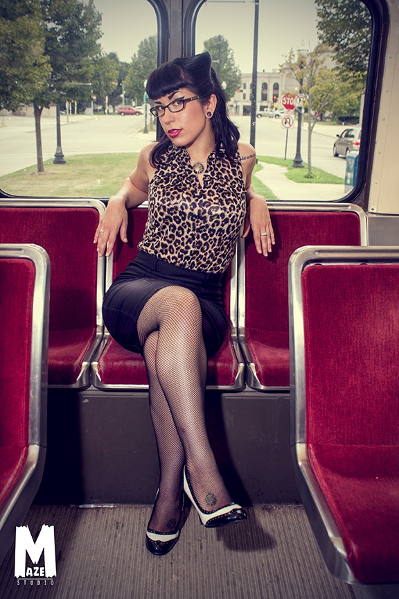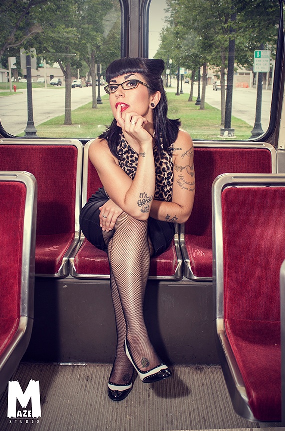 Krystle arrived with her boyfriend and was ready to get to work. I thought she looked amazing with a ’50s pin-up style that suited her quite well. It reminded me of a fellow blogger (Sabrina) who sells home-made vintage style pillows and accessories via “Sabbie Purses” (check her site HERE). Brian told me the shoot could take 3 hours since most models need to warm up a bit but that would not be a concern today. Although a novice, she took right to it and had no trouble taking direction from the get-go.