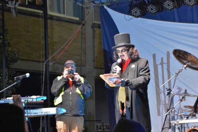 Feeling a bit awkward, I made my way up the stage and starting snapping photos of Svengoolie addressing The Nightmare on Chicago Street crowd. I later learned there were nearly 7,000 people out there which, had I known at the time, would have me a nervous wreck! Elizabeth Haney was determined to capture a Sven’s eye view of things and the last thing I wanted to do was let her down. Seeing the immense crowd really brought home the full power Svengoolie had on my fellow fans. Sven cracked a joke about it being so cold he was glad he had his iphone because he’s “freezing his apps off” and the conest began…