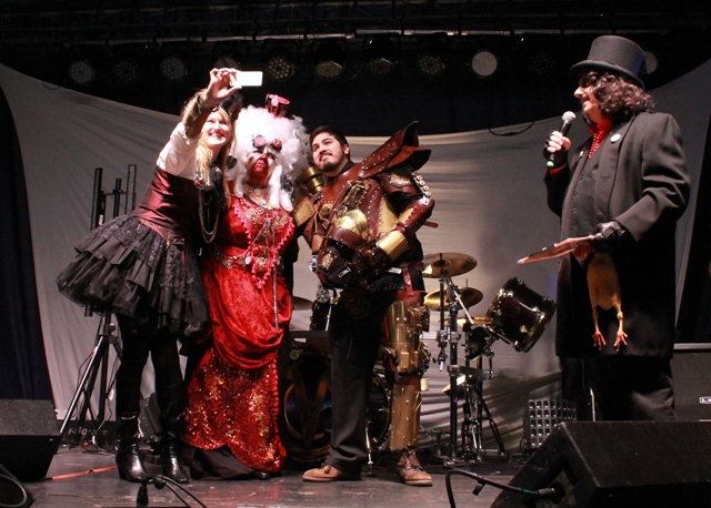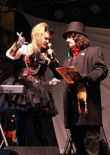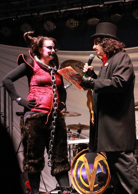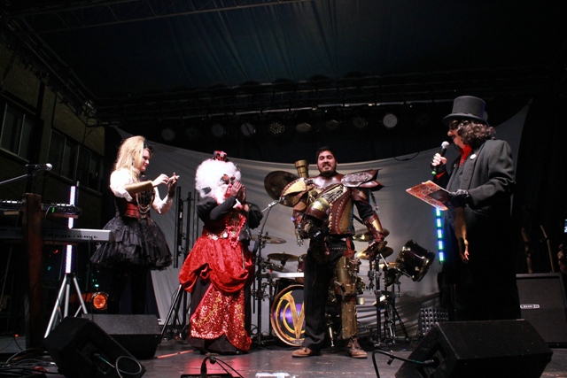The categories were “Best Couple or Group, “Best Zombie, “Best Steampunk,” “Best Horror,” “Best Original,” and “Best Overall.” First up were the contestants with group costumes. A Zombie Wedding Party took 3rd prize!