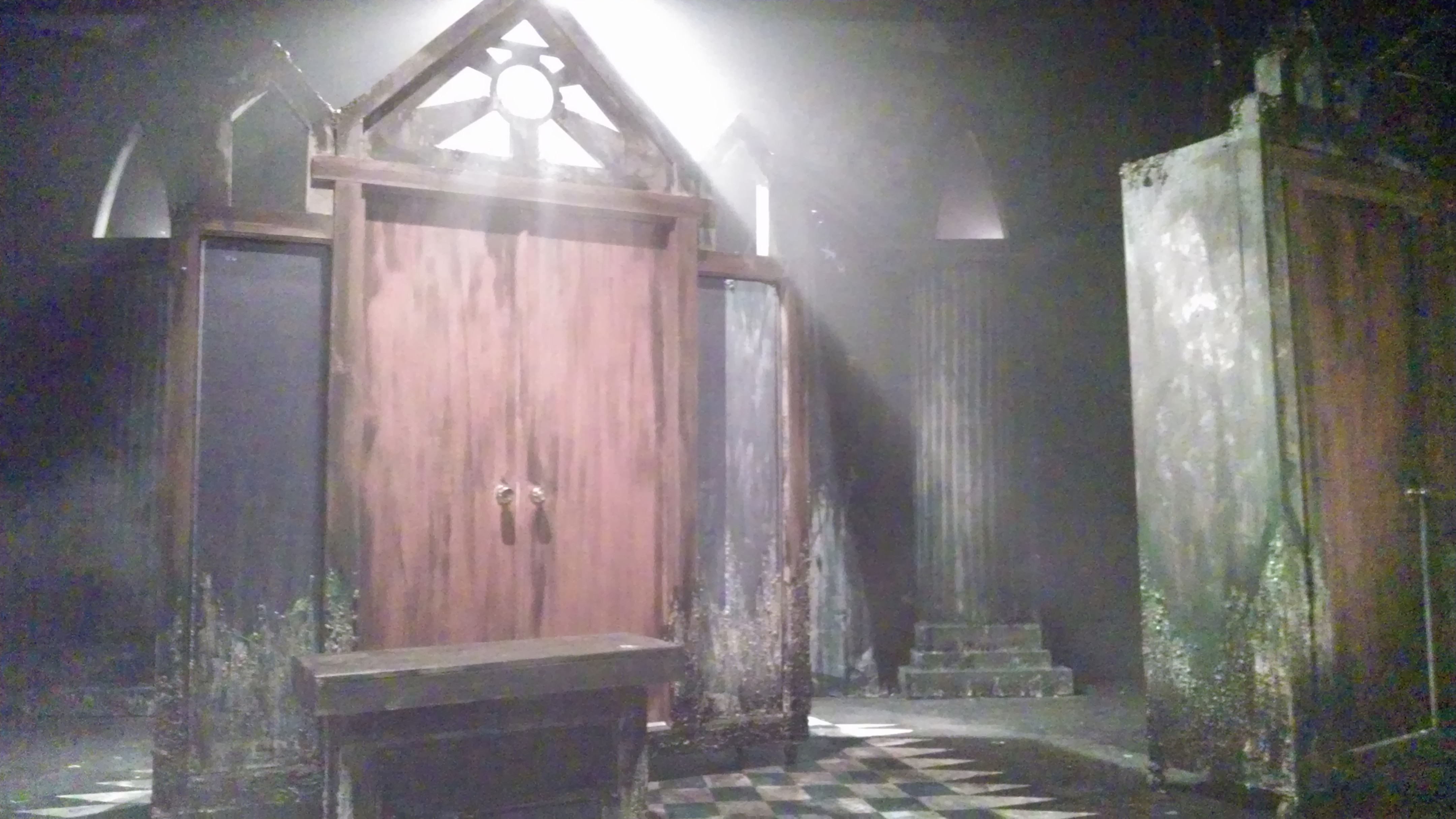The playwright did make some major changes from the original story – the female main character being the biggest change. Lovecraft’s narrator (the original story is a first person narrative) is a man. I didn’t realize this change had been made until after the play was over, when Terror Dave Fuentes told me about it. I’m so used to the American paradigm of female main characters in horror stories that it didn’t faze me at all that the hero of the play was a woman.