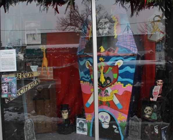 I had just left my son, Luke’s, basketball practice when we both headed up to the shop. I’d never heard of the place before despite it being less than a half hour from my place. I parked in front and saw Brian outside looking over his window display. I sent Luke outside to bring him a Frankenstein Mold-a-Rama from Brookfield Zoo (thought I forgot you wanted one of those, didn’t you Brian?). We greeted each other and took another gander at his replica coffin and props.