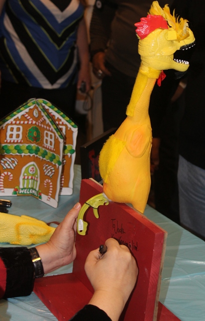 Brian had Sven sign his Jocko (cousin of Kerwyn) chicken which we joked should make an appearance on the show with Jocko having the voice of Dean Martin (to compliment Kerwyn’s Jerry Lewis). This prompted Brian and I to start singing Dino’s version of “Baby it’s cold outside” which likely had Sven pondering the mental state of his fans.