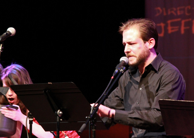 At Deathscribe, a huge part of the laughs comes from seeing the Foley artists hard at work right on stage with the actors. Time and again I find my eyes drawn to them because they are doing so many different things. The actors, on the other hand, are usually just standing at the mikes.