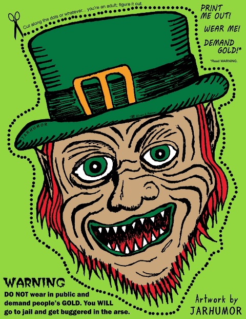 Tired of St. Patrick’s Day decor featuring shamrocks and cute, chubby leprechauns sitting on a pot o’ gold? Looking for something a little more sinister? Well look no further than JARHUMOR for all your gruesome needs!
