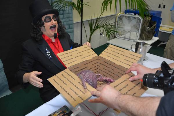 This year’s fundraiser went smoothly and was a huge success, raising quite a bit of money for a great cause! It is amazing to see so many zoo employees, volunteers and the public come together for a great cause. It was also amazing to see the support from nearby Lincoln Park Zoo, as some of their zoo keepers and AAZK chapter showed up as well. As always Svengoolie drew a great crowd of fun people and the evening was full of non-stop laughing. If you have not been to a Svengoolie appearance I cannot recommend it more as Sven, alongside his assistant Jim Roche, are two very talented and very funny individuals, entertaining the crowd constantly. Both men are very quick witted and play off of each other much like you would see with Abbott and Costello back in the day.