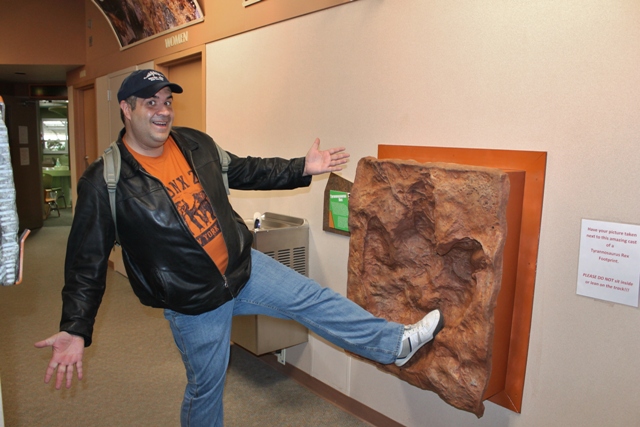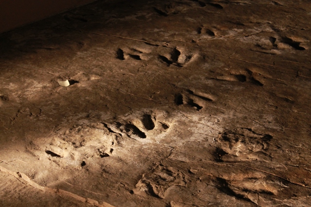 We no sooner arrived at the Park when the rain stopped. We walked outside and saw a trail of painted dinosaur prints leading us into a white domed building. This was a precursor to the real ones awaiting us inside as this was no ordinary museum…