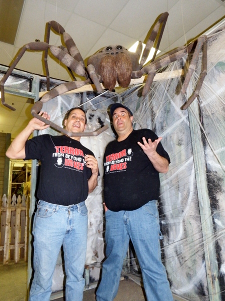 At the end of THE AMERICAN SCREAM, it looked like Victor was going to be taking his yard haunt and making it into a legitimate money-making business, called Ghoulie Manor Haunted House. Thanks to social media, Terror Dave Fuentes contacted Victor to see if we could meet with him during our recent two-week zoo tour. Victor readily agreed and we set out to the Silver City Galleria Mall in Taunton, MA. Though it was only April, Victor was in full swing getting his haunt ready for the October season.