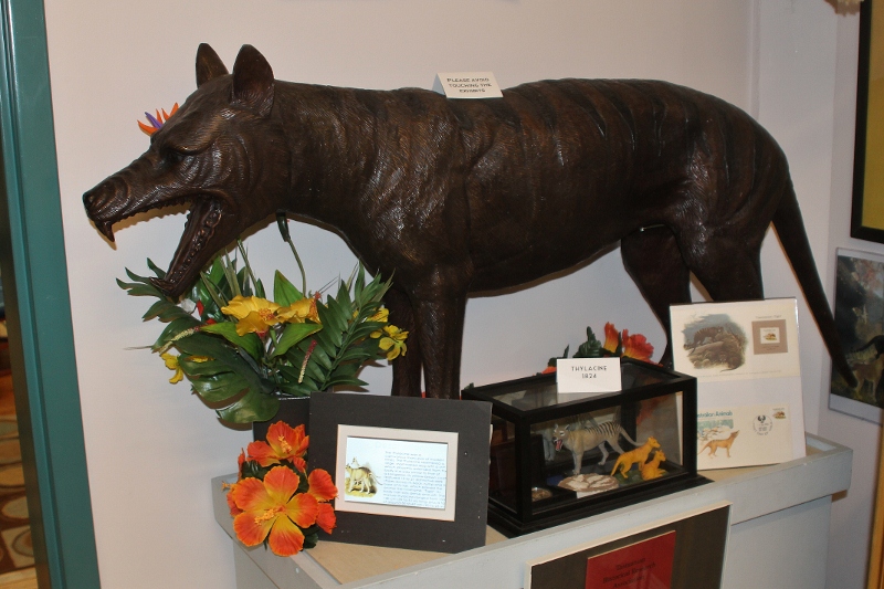 Cryptozoology can also give hope that animals that man has wiped out may still exist somewhere such as the Tasmanian Tiger which the museum boasted a larger than life-sized bronze statue of. I get sad every time I watch footage of the last Tasmanian Tiger (not a tiger at all but a marsupial canine) at an Australian Zoo. I posted the video below this picture so you can see it too. Sarah and I both discussed the animal in detail and it was obvious she knew her stuff.