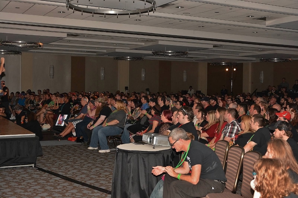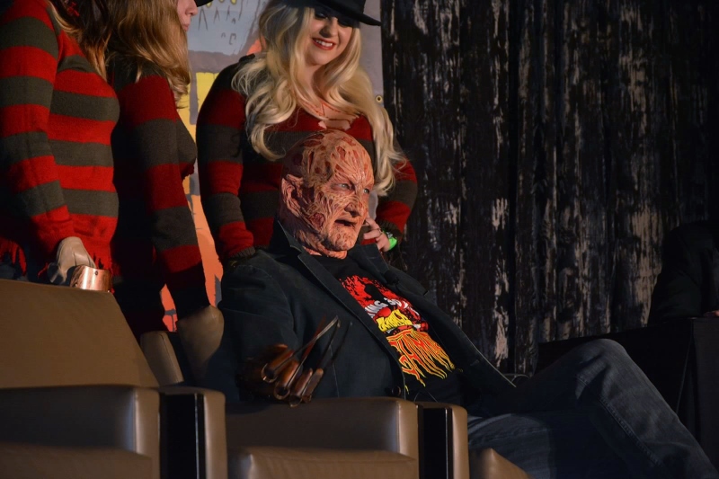 Not long after I took my seat the show began. Svengoolie took the stage and introduced his first guest, Robert Englund. Though customary to save your best guest for last, Englund had already been wearing his Freddy make-up for several hours while greeting fans. As he’d explain later, he was “starting to itch,” so out of courtesy he’d be first on stage.