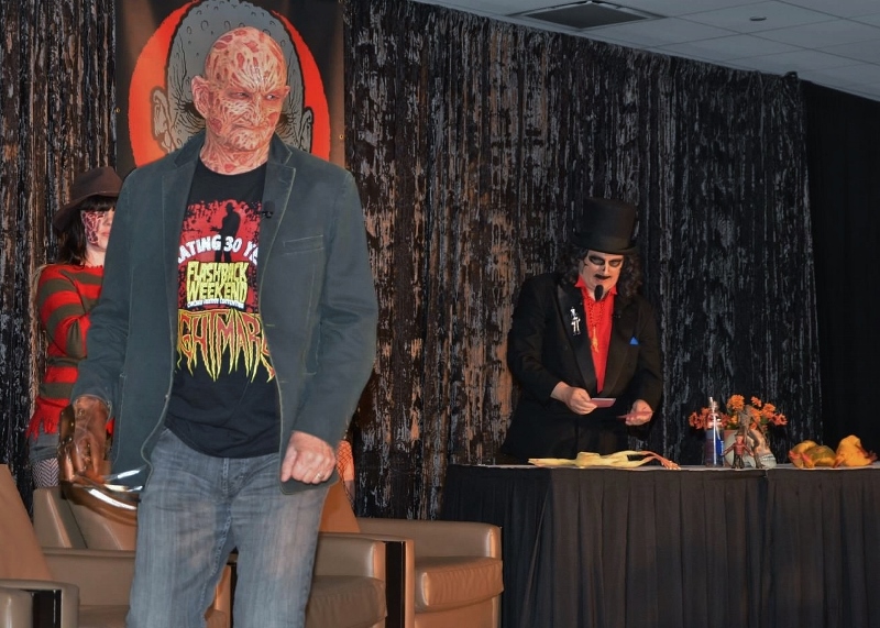 In celebration of this special day, I’m going to go back a couple of months and continue with the story of Sengoolie’s incredible evening at Flashback Weekend with Robert Englund (in full “Freddy” make-up) along with cast members from the A Nightmare on Elm Street films. In lieu of this one-of-a-kind situation, I decided to withhold that portion for Halloween/Svengoolie Day but, if the jumbled timeline confuses you, please feel free to “flashback” yourself to the first part HERE before moving forward. I should also mention that my coverage of his 35th Anniversary will commence next week and, hopefully, things will start flowing in natural order from then on. I’d also like to give special thanks to Jim Roche for allowing us to use his awesome photographs for this post.