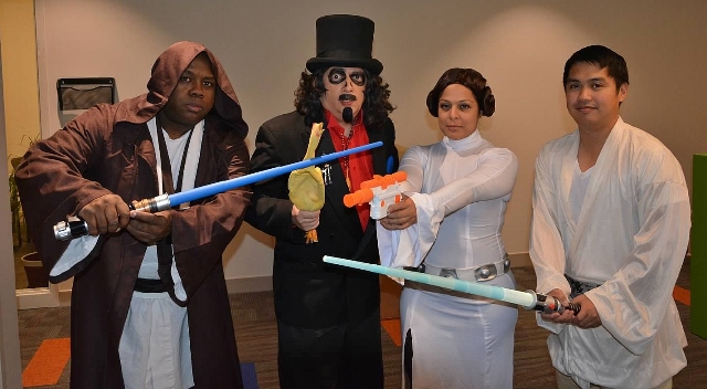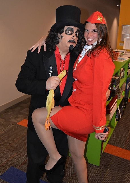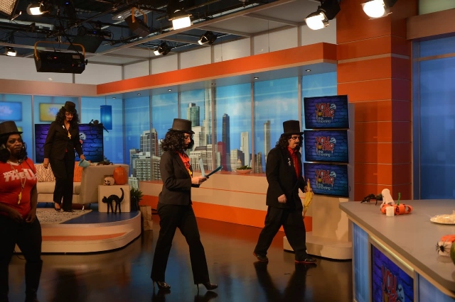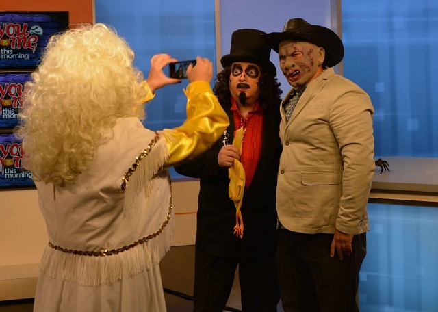 Before leaving the station, Sven stopped to get photos with fellow crew members who dressed for the holiday. First up was You & Me This Morning’s Aly Bockler who does the “On the Block” segments for the show. She was dressed as Dolly Parton which I thought suited her quite well for two reasons. No, no…not those two reasons, I meant how they both have bubbly personalities and are extremely likeable. Of course the obvious joke wasn’t lost on Bockler who’d gone outside the studio to interview people; something she described as her way of “busting out.”