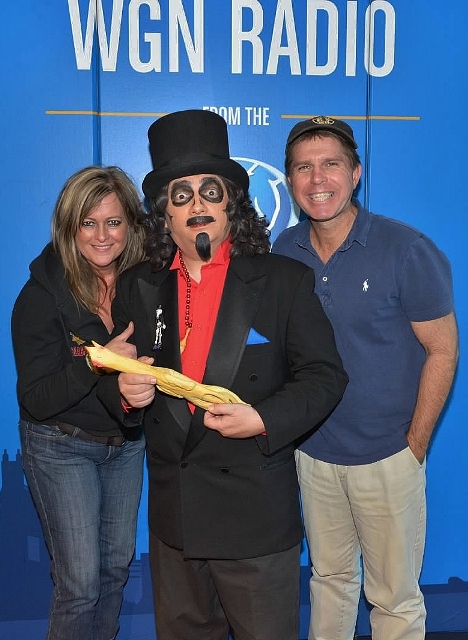 Next up was a visit to WGN Radio where Svengoolie would be a featured guest on the “Bill & Wendy Show” (he’d also done a phone interview for WBEZ Public Radio earlier) The show began with Wendy attempting to read House Resolution 1041 (which declared October 31, 2014 as Svengoolie Day) before giving up in frustration. Sven suggested they turn it into a drinking game and every time you hear “Where as,” you indulge in your favorite cocktail (from the comfort of my own home, Sven had me laughing the entire day). Bill stated that Svengoolie has “changed the complexion of horror films in the city and now the country.” His national appeal was reinforced by them mentioning the Mark Hamill Tweet from earlier.