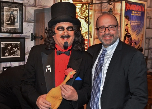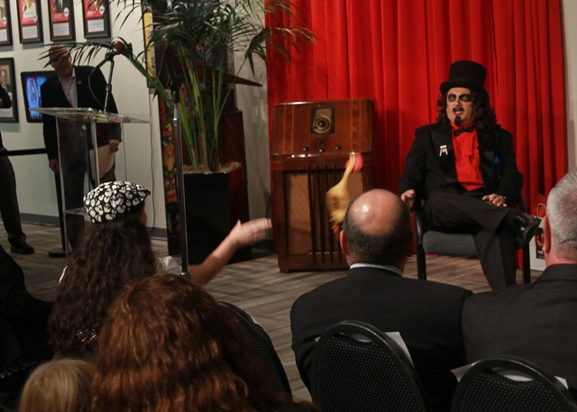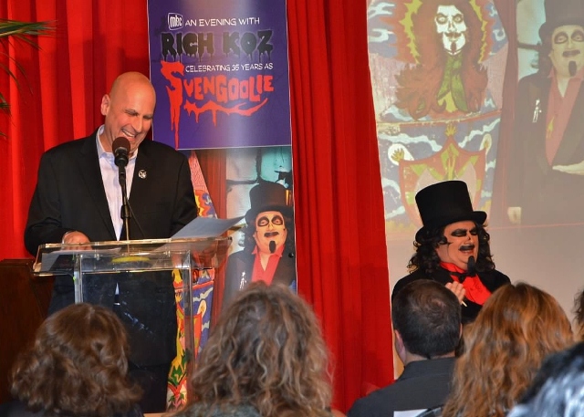 We’d no sooner taken our seats in a special area located on the second floor of The Museum of Broadcast Communication, when we were back up on our feet cheering the arrival of Svengoolie. The man of the hour, Rich Koz, was celebrating his 35th anniversary as Chicago’s (and now the majority of this country’s) TV horror host and the room was chock full of devout fans and prominent citizens eager to participate in this one of a kind event. It was a serious affair that might otherwise seem in direct contrast to a career built on never taking himself too seriously though, in this case, well-deserved.