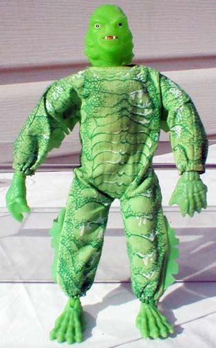 From here REMCO went to a 9 inch version of these monsters. They were fully poseable and featured “Monster Crush” grabbing action and usually came with an iron on patch and a glow in the dark ring. The heads and hands also glowed. A larger Monsterizer was also offered for these larger figures.