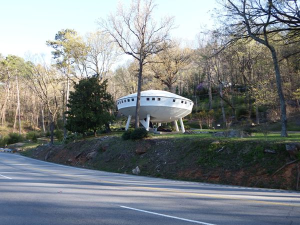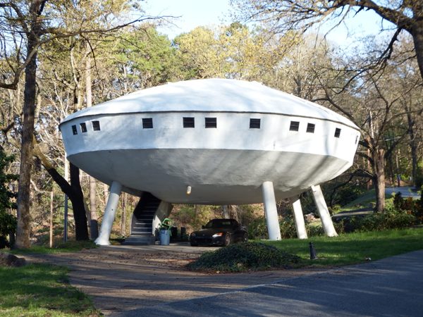 What is fascinating about this house is that it not only looks like an honest-to-goodness UFO but it’s location is perfect; sitting on the side of Signal Mountain and overlooking Chattanooga. If you’re coming down the mountain one dark night (not knowing the house is there) and come around the last bend and see it, you’ll likely slam on your brakes questioning your sanity or how many drinks you’ve had!