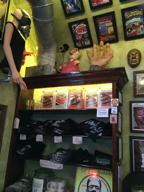 While we were dining with Dr. Gangrene in Nashville, we asked him if he knew of any cool places to visit in Chattanooga. “Well,” he said. “A friend of mine told me about a place called Aretha Frankenstein’s. I hear they’ve got great food and atmosphere.”