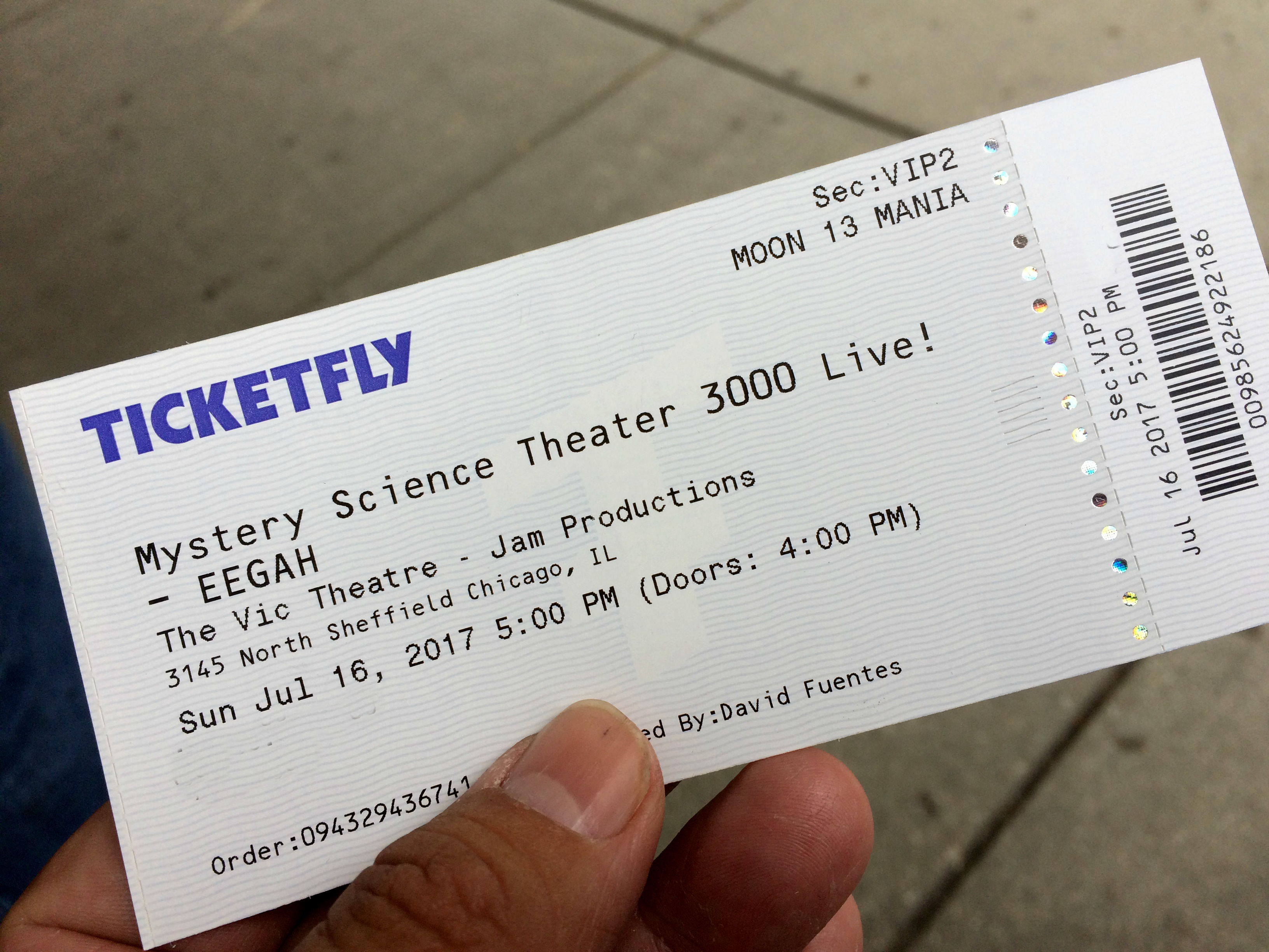 MST3K VIP Ticket 2017 Published July 22, 2017 at 3264 × 2448 in MST3K “Watch out for Snakes” Tour a Riffing Riot! ← Previous Next → Share this:Share Click to share on Reddit (Opens in new window) Reddit Like Loading...