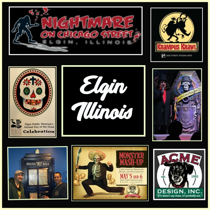 Anybody who’s read anything I’ve ever written about their Nightmare on Chicago Street, knows I truly love this city. They always come up with the best horror-themed events and I hate that I don’t live closer to them. If I did, I’d probably be up there every weekend watching Dr. WHO with fellow fans at their Blue Box Café, stopping by Acme Design (a.k.a. the birthplace of Svengoolie’s new coffin)to say “hello” to Elizabeth Haney, and be a regular at Side Street Studio Arts who host an annual Krampus Krawl in December along with this event in May.