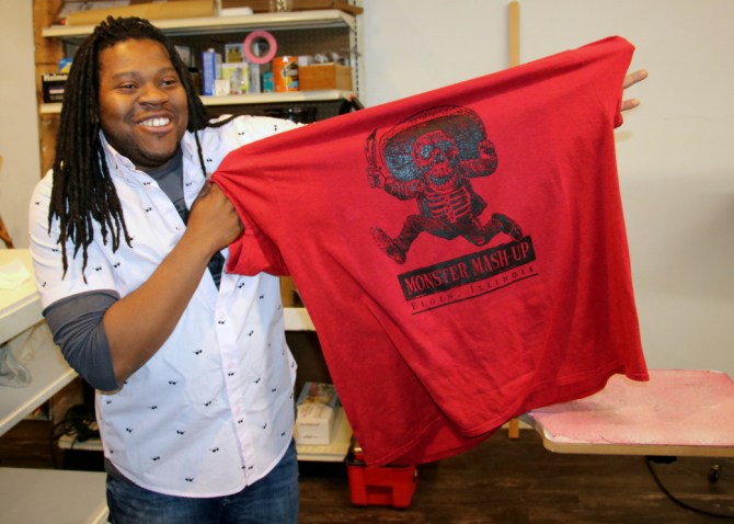 Before leaving, we stopped to have Monster Mash-Up T-shirts made. If you brought your own tee, then they’d silk-screen their event logo on it for free. The kids enjoyed watching them being made, in no short thanks to Fred Wimms. Wimms was very engaging to us while explaining the whole silk screening process. I was later told by my friend from Nightmare on Chicago Street, Alice Moring, that he’s the “heart and soul” of that event.