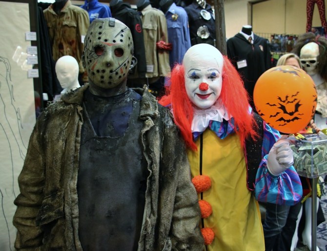 The day before my buddy, Chris Carr, and I left for Horrorhound Weekend/Mask-Fest, we saw Stephen King’s IT with my kids. It was the Thursday night premiere and afterwards I groggily posted a blog on it before getting the few hours’ sleep necessary for the drive to Indy. At the time, we assumed there’d be lots of fans dressed as Pennywise at this event but, outside of a couple Tim Curry versions, that wasn’t the case. Understandably, most folks hadn’t even seen IT yet. That’s not to say, however, that Horrorhound didn’t seize upon the film’s debut nor the resurgence of killer clown popularity since last year’s media-driven hysteria.