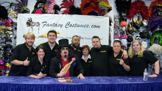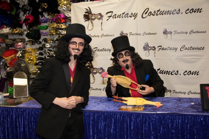 Last Saturday I was sitting at my work desk while gazing at the tempest outside. Since it was the weekend, I had the whole office to myself and decided to turn off the main lights in favor of a small one hanging over my computer. With the dark clouds and rain pounding on my window, it seemed to make the otherwise chaotic place cozier; something you could never accomplish during normal business hours. With Halloween only a couple weeks away, we Chicagoans can be sure of two things; the weather will be erratic and our local/national TV horror host, Svengoolie, will be amidst a busy schedule of appearances. In fact, it almost seemed like this year’s list of events rivaled that of his ultra-busy 2012. I’d covered almost all of those and remember being thoroughly exhausted by the time it was over. This year, however, my “Svengoolie-stalking” activities were clearly lacking as my schedule never seemed to be in sync with his. On this rainy day, however, he was slated to make two appearances with one starting just when my shift ended. I decided it was high time I broke out of my Svenertia. and braved the elements to see him at Fantasy Costumes – the largest costume shop in the windy city!