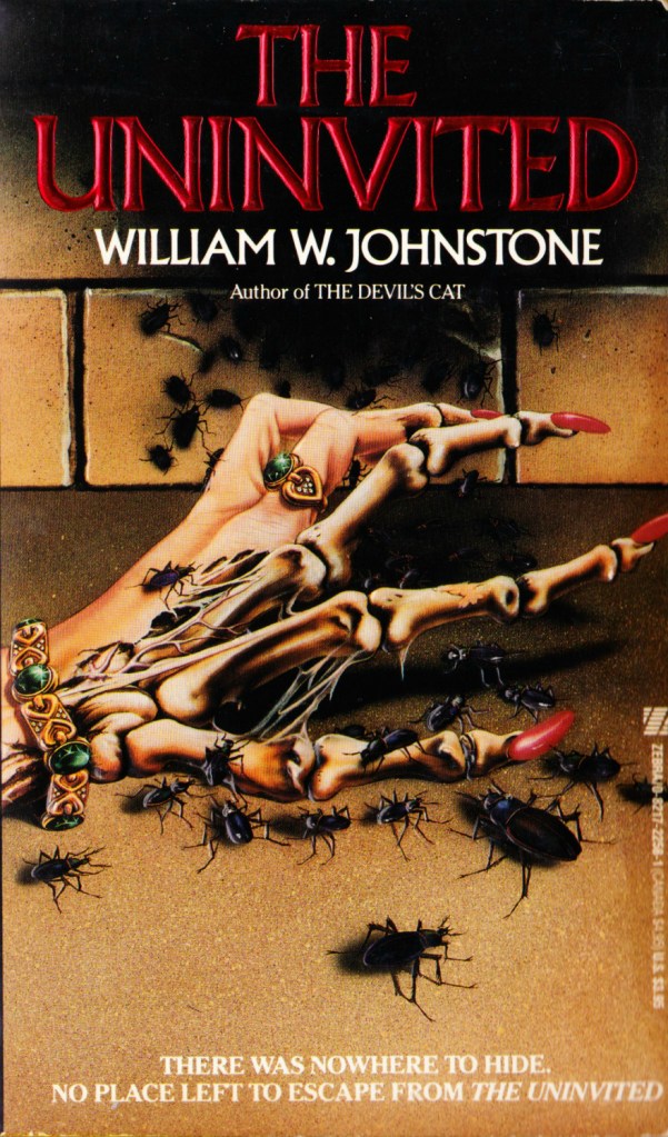 At an age when everyone was talking about King and Koontz, the far more ambiguous William W. Johnstone was no less active. He’d pen over two-hundred books, mostly westerns, along with twenty-five horror titles including this one, “The Uninvited” (1988). It’s about an army of mutant cockroaches terrorizing a small Louisiana town and I remember thinking at the time, “David, ole ‘bug guy,’ ole buddy, ole pal…I’m sorry but this one stays with me!” And in the blink of an eye, my new horror paperback collection was born.