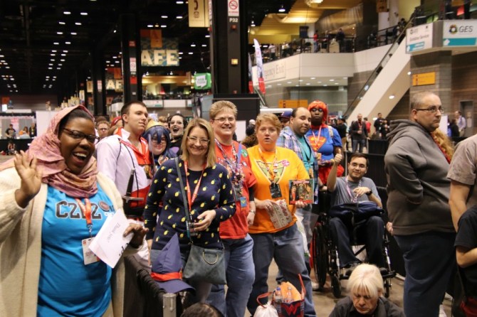 There were two lines to see Sven, and everyone was very nice. Chris and Mike went out on the floor to scope out interesting cosplayers for the show.