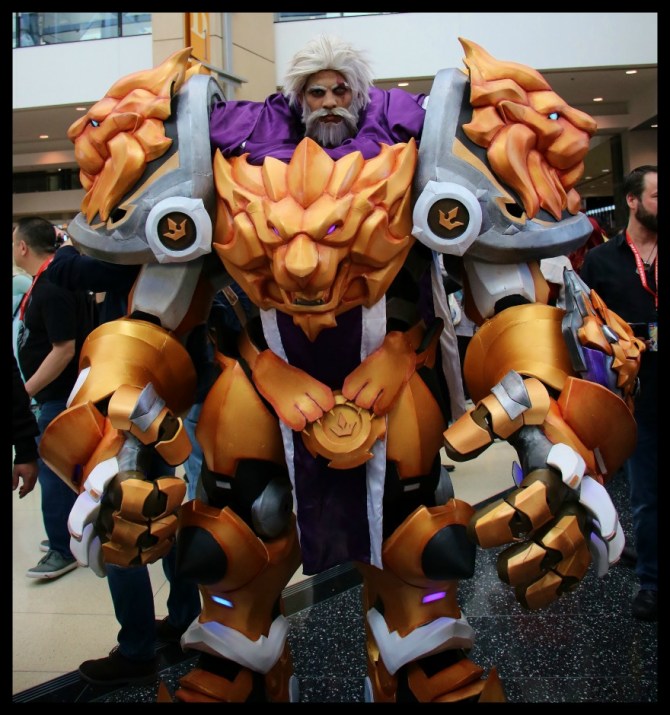 10:20 am – We’re back in the main convention hall of the Chicago Comics & Entertainment Expo (C2E2) at McCormick Place. My daughter, Leia, and her friend, Rachel, take off on their own while my other daughter, Jade, heads over to Cosplay Central with me. This zone, designated for cosplayers, has space for their elaborate costumes, photo backdrops, and even panels on this topic throughout the weekend. The first thing that caught our attention was a tall monster that looks like a composite of Sil from Species, Giger’s ALIEN, and the Balrog from Lord of the Rings! I have no idea how someone even begins to create something like this let alone moves around in it! If you have any doubts about cosplaying being a legit artform, then I strongly urge you to come to C2E2 for some clarification.