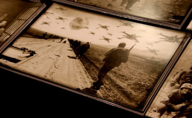 11 am – Jade and I go back out to the vendors to do a little shopping and seek out the ones who caught my interest the day before. Unfortunately, the place is so huge we spend most of it running around in circles. Finally, I spot one of them – artist Billy Ludwig’s Thirteenth Floor. This guy does some incredible things combining vintage photographs with modern popular culture. I particularly loved his UFO-related stuff (being the kind of guy I am) and his STAR WARS/World War II mash-ups.