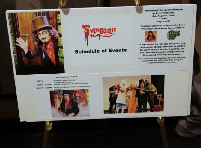 For the second year in a row, Flashback offered a professional photo op with Sven which was to be his first order of business. After quickly setting up his signing area, we went across the hall to the spot designated for Celeb Photo Ops. As we made our way towards their makeshift studio, we passed a line of fans awaiting their turn.