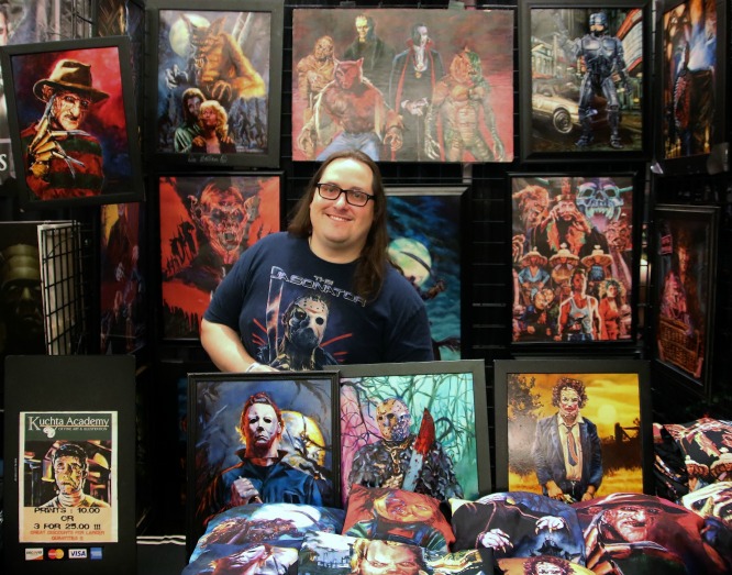You see, I really wanted that wall hanging but knew it wasn’t licensed. Since Sven’s gone national, there’s been a lot more unofficial stuff out there which I know is a sore spot for him and his team doing all the hard work (and horror hosting on commercial TV is a lot harder than you think). Sven’s been a good friend to me and the last thing I wanted to do was betray him by supporting this kind of thing. At the same time, that wall hanging needed to be on my wall and, if I’m being honest, I could probably fill a 12 x 12 storage unit with all the unlicensed horror items I’ve been routinely buying (as you’ll see even more evidence of as that as this blog goes on) over the years. Despite the old adage, “it’s easier to get forgiveness than permission,” I decided to go directly to the man himself and do just that. I snapped a photo of the vendor’s display and then shot Sven a message asking for his blessing in buying it. Thankfully, he responded with his usual sense of humor, “Sure! Let Universal sue them!” I later heard this was the first piece the guy sold and all his Svens sold out (mine being the last one). Now I just have to hope Universal doesn’t go after him until I’ve had a shot at a Creature from the Black Lagoon one he did, too.