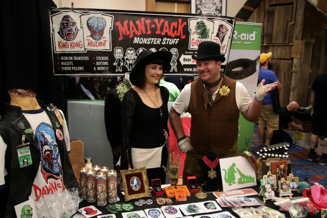 The next items I bought were from a talented young mask-maker named Noah Rivers. This is one of those things I saw at last year’s Indy Horrorhound and didn’t buy; spending the rest of the year wishing I had. They were these really cool handmade magnets of the masks from Halloween III: Season of the Witch and I quickly bought them. Noah wasn’t at his booth and the transaction was handled by his proud father. I did make a point to go back and tell him how much I loved his work. As for the magnets, they will be featured on my refrigerator all year round with some magnets I purchased at previous conventions.