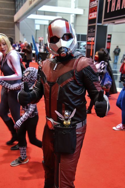 Other cosplayers benefited by the character’s small size by adding Ant-Man to their own ensemble – like one clever fan who dressed as the Infinity Gauntlet and had the tiny heroes clinging to it. I should mention there were a couple clever “Infinity Gauntlets” roaming the hall, including one that had a sign reading, “Yo’ mama is so fat I had to snap twice!”