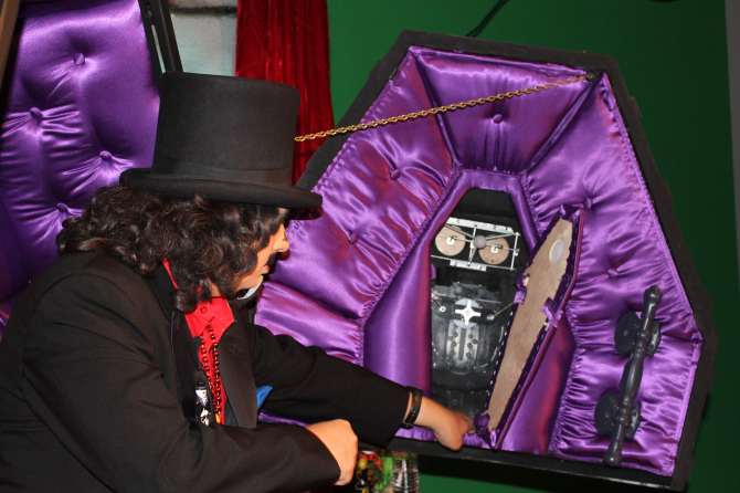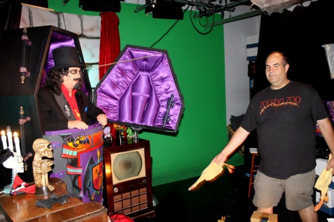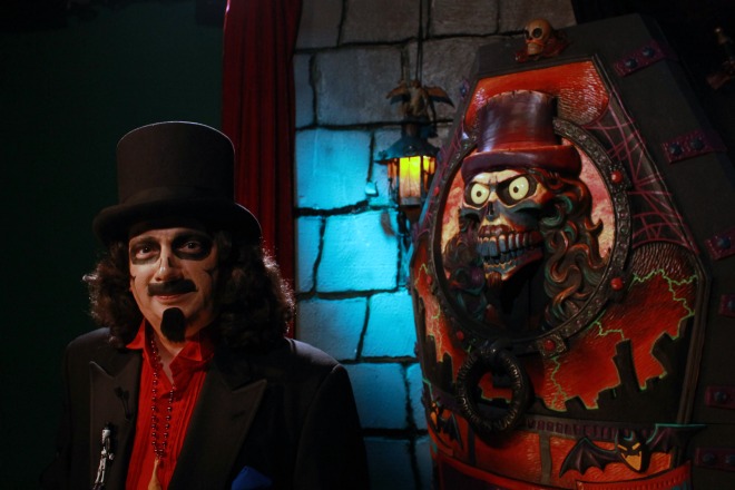 Svengoolie debuts a prototype of his new coffin at Nightmare on Chicago Street 2012Svengoolie Health Scare!