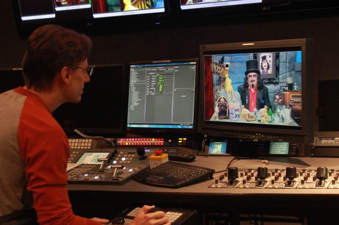 Director, Chris Faulkner, coordinates Svengoolie’s desk for every movie
