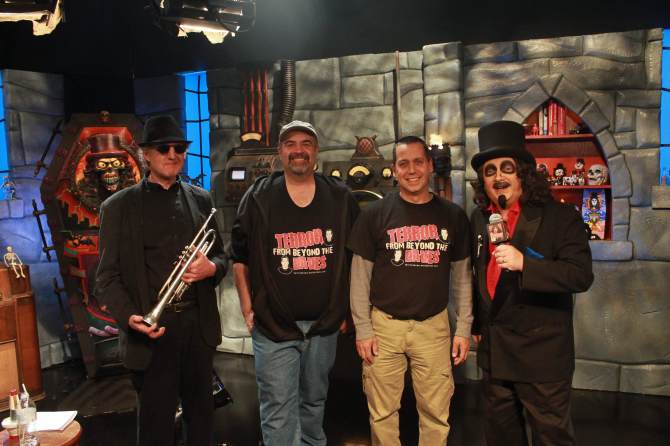 I’ve had the honor of seeing Svengoolie at the studio several times. My upcoming Scary Monsters article will discuss my most recent visits but here are some shots from past years…