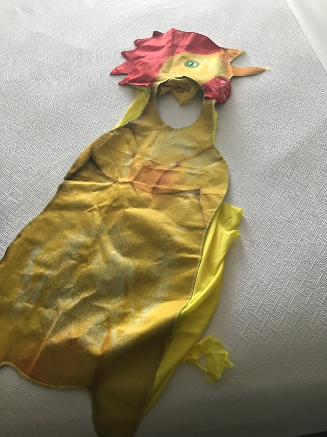 When I showed this photo to my kids after the event my son, Luke, cracked up. Not because his dad was wearing a chicken costume but because the way the ripped lining hung down from it made it look like my rubber chicken was giving birth to another one! At second glance, I have to say he’s right.