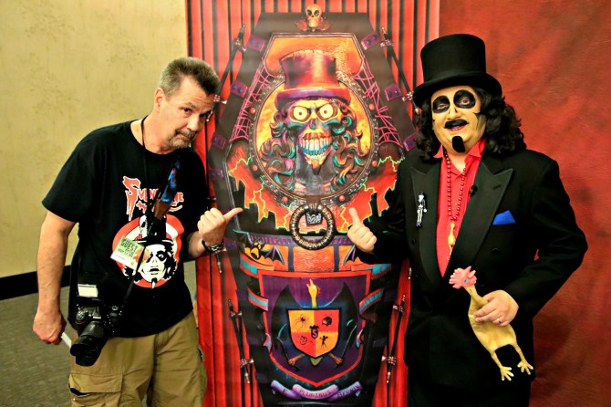 After it was over, Kitsie was really cool and allowed us to stay and take pictures. This year, the crew brought along a canvas replica of Sven’s coffin to enhance the photos. Afterward, Jim wanted shots of Svengoolie and the gang in front of it which he admitted was funny considering they all work with the real one.