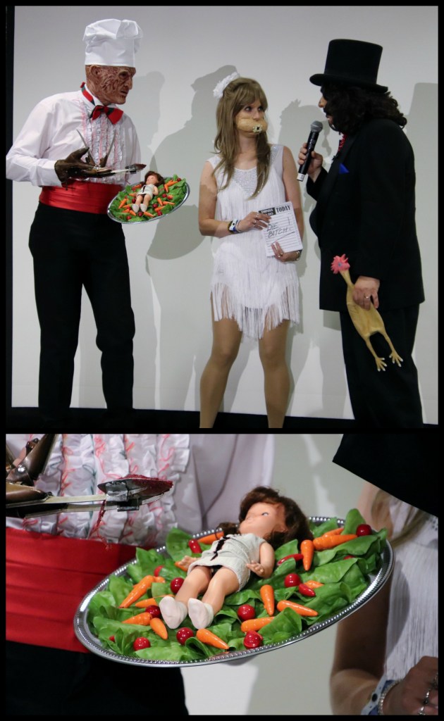 Don Johnston literally helped cart out the next contestant dressed as Hannibal Lector. She’d been rehearsing her lines offstage and when Svengoolie put the microphone in front of her she yelled, “Fava beans!!!” It was really funny!