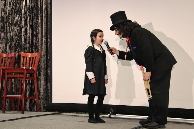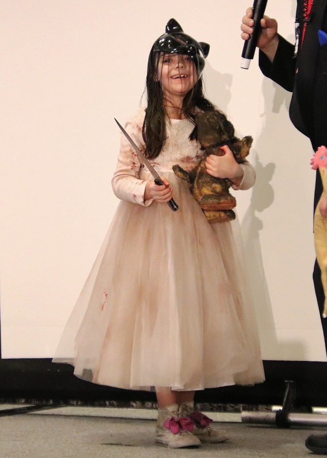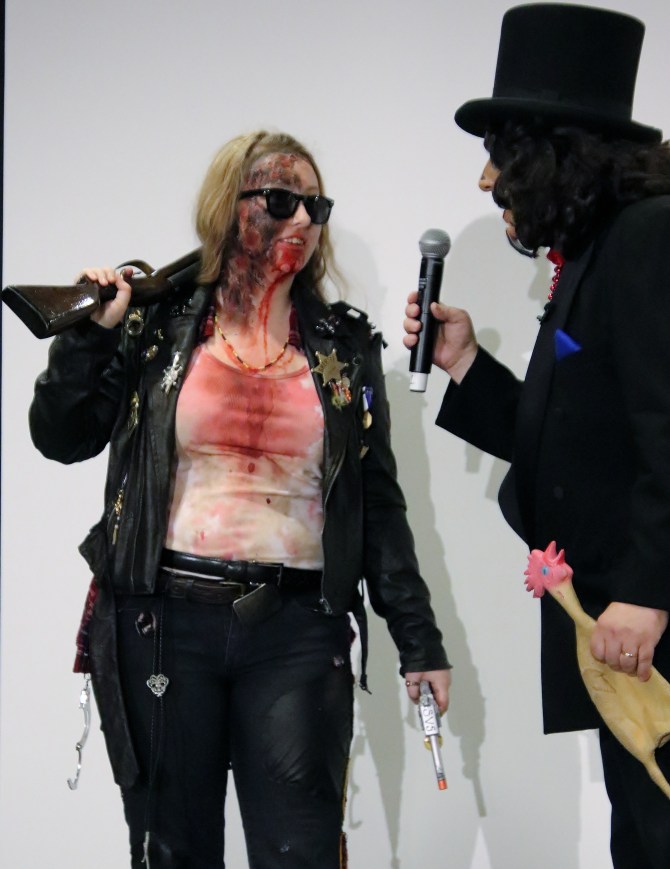 Every year it seems like artist Mitch O’Connell’s son steals the show with his campy/fun costumes and this year he outdid himself! Dressed as the furry “Ro-Man” from Robot Monster (1953) this adorable contestant even brought along his own bubble machine!