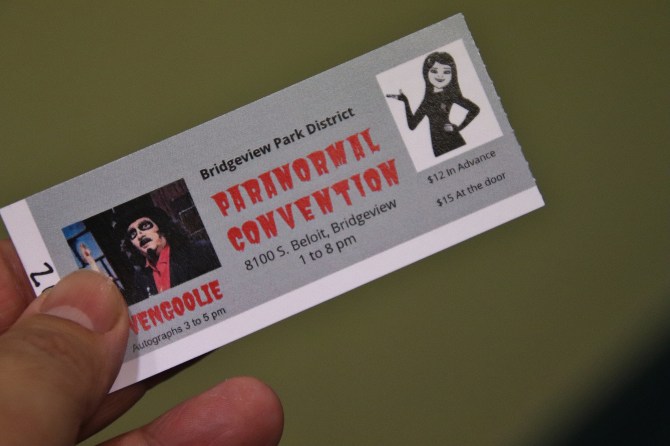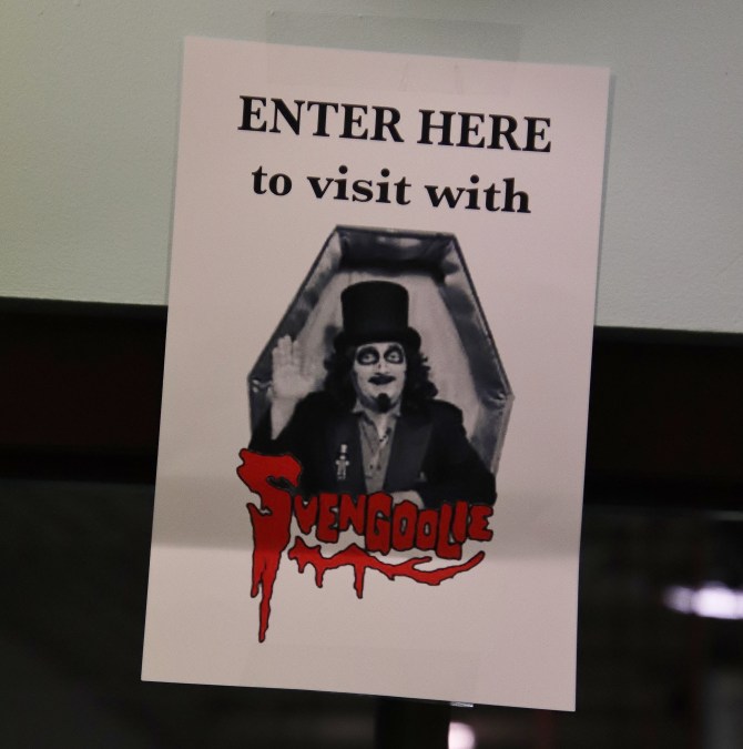 Regardless of the shenanigans outside, the Paranormal Convention in Bridgeview was already underway. I paid my entrance fee and was delighted to see they had MeTV’s national horror host, Svengoolie, on the ticket. My daughter, Leia, had just put together three shadow boxes of my Sven memorabilia and now I had something new to add to it.