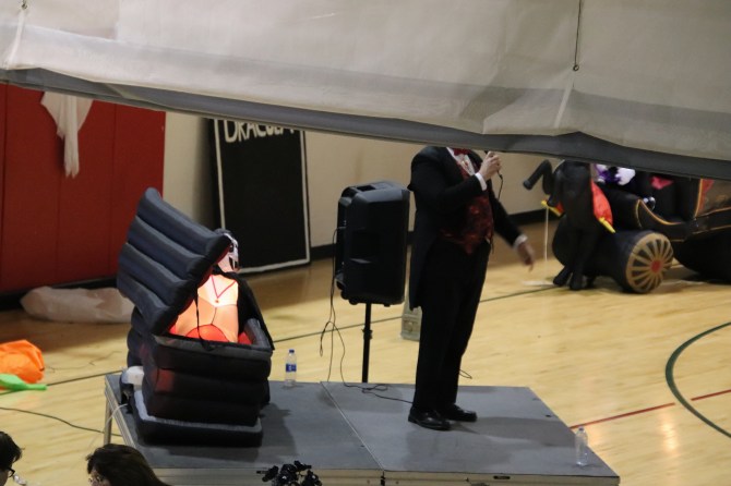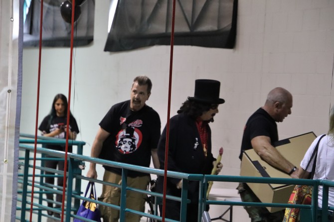 I didn’t know it until I arrived, but the event was being emceed by Count Gregula. The Count and Countess Gregula had joined me on a few adventures during the earlier days of this site but it’s been years since I’d seen them. They used to make a labor-of-love horror host show but have since joined forces with Chicago NOW; covering local events like the big Auto Show in February as well as porn conventions. The Gregulas were fashionably late for this event and I watched them mingle from my bird’s eye vantage point. Later, the Count took to the stage and welcomed everyone to the event. Unfortunately, between the gymnasium acoustics and microphone, it was unintelligible from where I was standing. Suddenly he looked up to the rafters and welcomed Svengoolie as he arrived.
