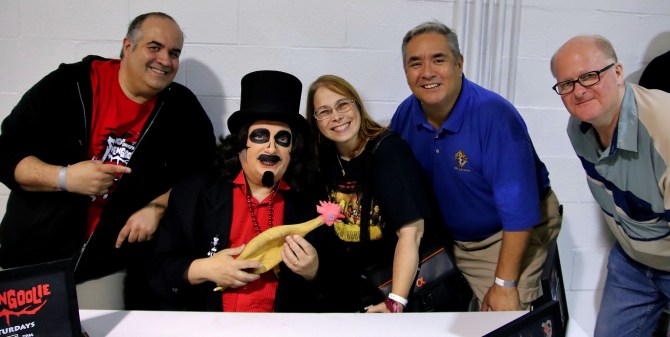 We made our way back downstairs to see the Gregulas taking a break by the food area. Gregula was telling me about a Vampire convention that was supposed to be happening in Chicago but fell through. Apparently, the organizer was writing rubber checks and an all-around shyster. Talking to the Gregulas, I forgot how fun they could be. Under the limelight of Svengoolie are some quirky, yet amusing, horror folks roving the Windy City.